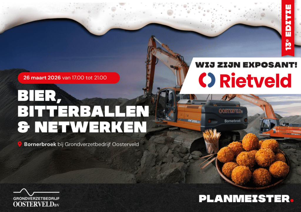 On March 26, we will be present as an exhibitor during the Planmeister Networking Event at Planmeister and Grondverzetbedrijf Oosterveld B.V. in Bornerbroek. A great opportunity to talk to professionals from construction, infra and earthmoving about a topic that is becoming increasingly urgent: working safely with machinery on the construction site.